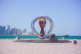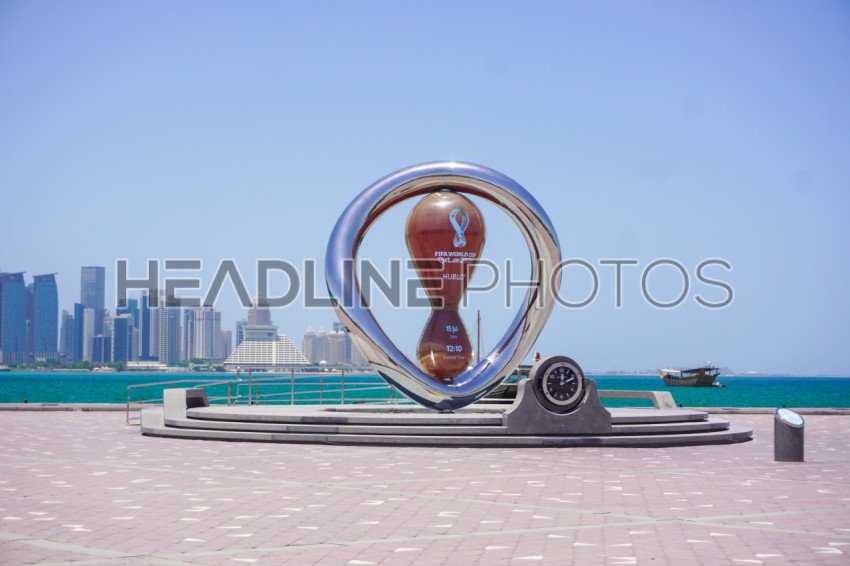 2022 FIFA World Cup countdown clock on Doha's corniche In Doha, Qatar
