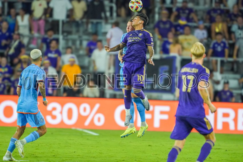 Orlando, Florida, USA, July 20, 2024, Orlando City SC midfielder Facundo Torres #10 wins the header at Inter&Co Stadium. (Photo Credit: Marty Jean-Louis)