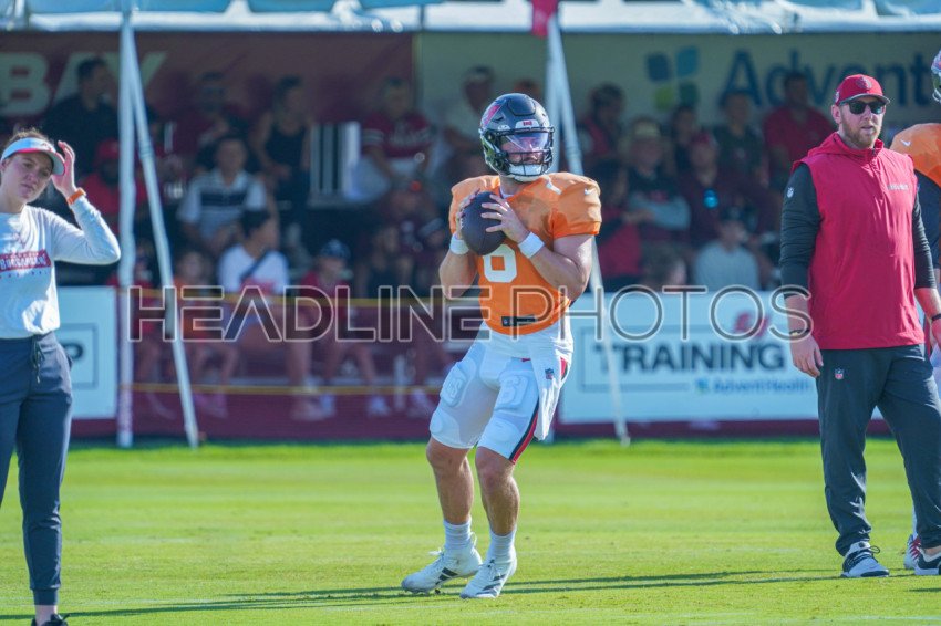 Tampa, Florida, USA, July 29, 2024, Tampa Bay Buccaneers' Baker Mayfield #6 during a Training Camp at Advent Health Training Center . (Photo Credit: Marty Jean-Louis)