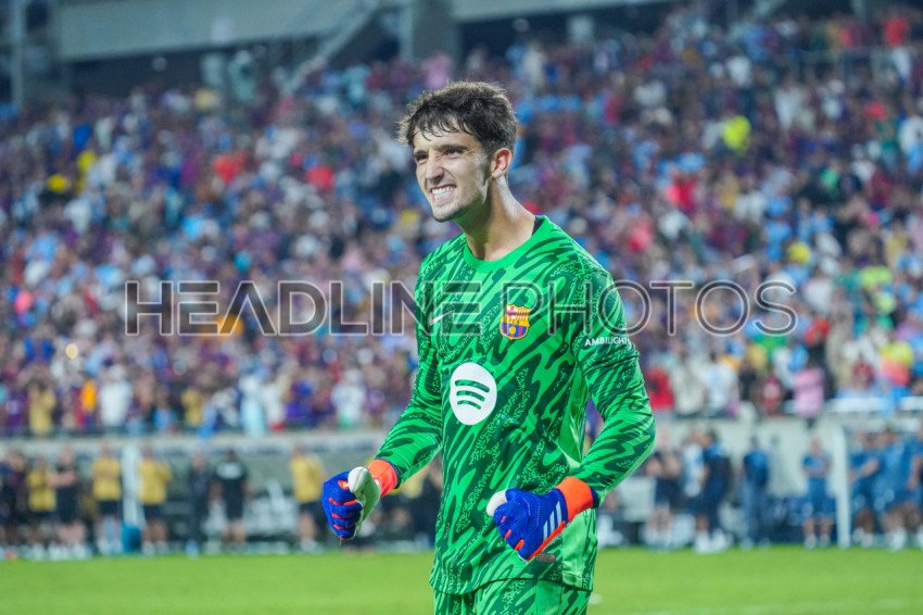 Orlando, Florida, USA, July 30, 2024, FC Barcelona goalkeeper Ander Astralaga #26 celebrates during the 2024 FC Series at Camping World Stadium. (Photo Credit: Marty Jean-Louis)