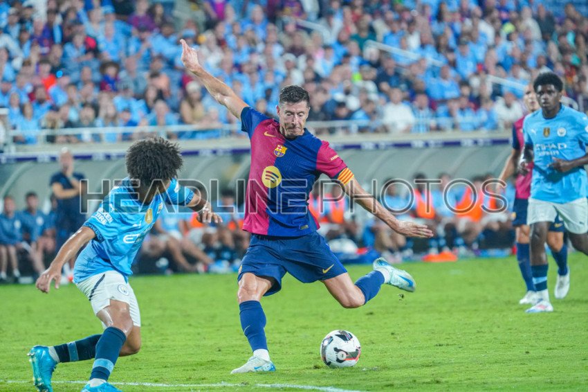 Orlando, Florida, USA, July 30, 2024, FC Barcelona forward Robert Lewandowski #9 attempt to score during the 2024 FC Series at Camping World Stadium. (Photo Credit: Marty Jean-Louis)