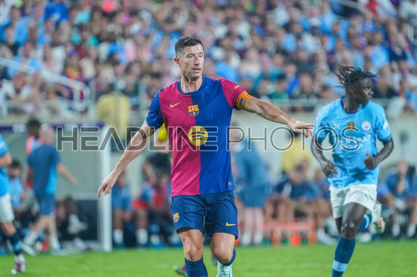 Orlando, Florida, USA, July 30, 2024, FC Barcelona forward Robert Lewandowski #9 during the 2024 FC Series at Camping World Stadium. (Photo Credit: Marty Jean-Louis)