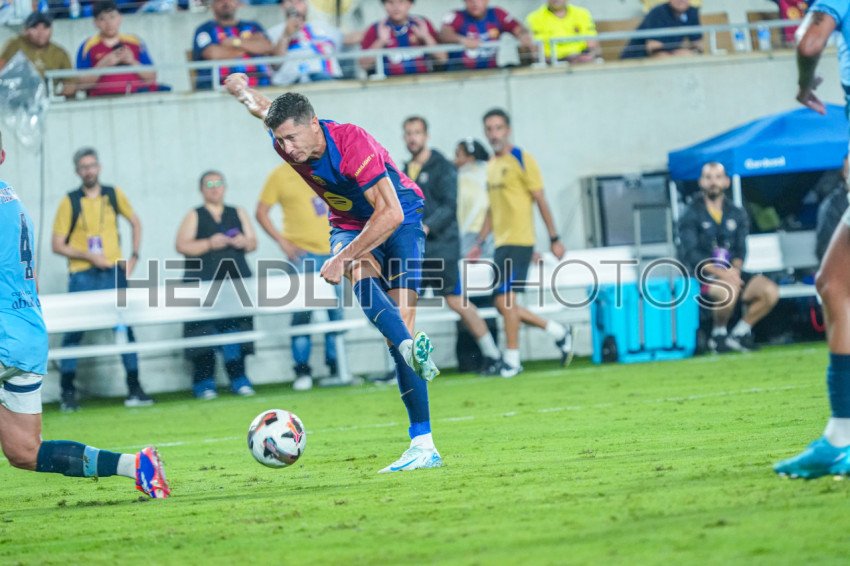 Orlando, Florida, USA, July 30, 2024, FC Barcelona forward Robert Lewandowski #9 attempt to score during the 2024 FC Series at Camping World Stadium. (Photo Credit: Marty Jean-Louis)