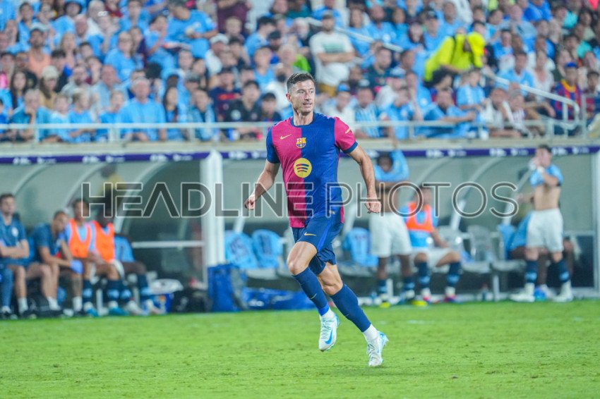 Orlando, Florida, USA, July 30, 2024, FC Barcelona forward Robert Lewandowski #9 during the 2024 FC Series at Camping World Stadium. (Photo Credit: Marty Jean-Louis)