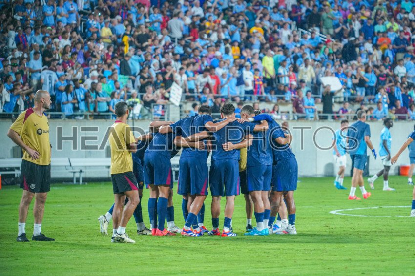 Orlando, Florida, USA, July 30, 2024, FC Barcelona places huddle after warmup during the 2024 FC Series at Camping World Stadium. (Photo Credit: Marty Jean-Louis)