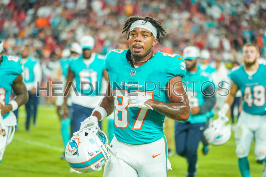 Tampa Bay, Florida, USA, August 33, 2024, Miami Dolphins player Kyric McGowan #87 at Raymond James Stadium. (Photo Credit: Marty Jean-Louis)