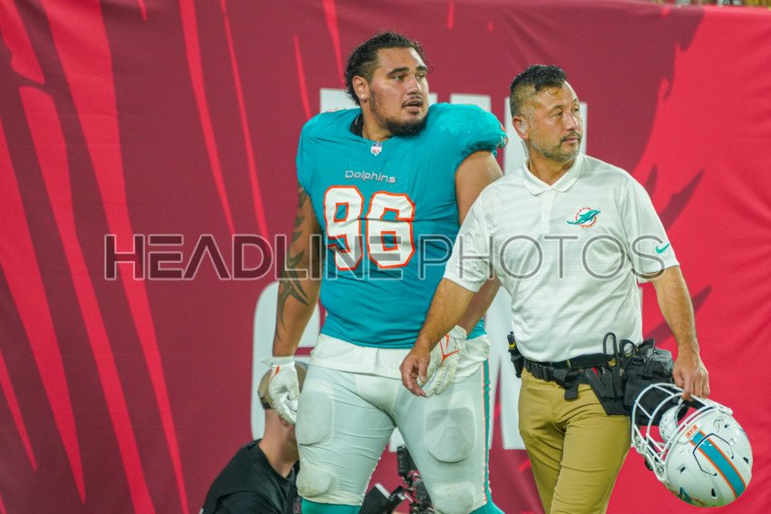 Tampa Bay, Florida, USA, August 33, 2024, Miami Dolphins player Brandon Pili #96 due to injury at Raymond James Stadium. (Photo Credit: Marty Jean-Louis)