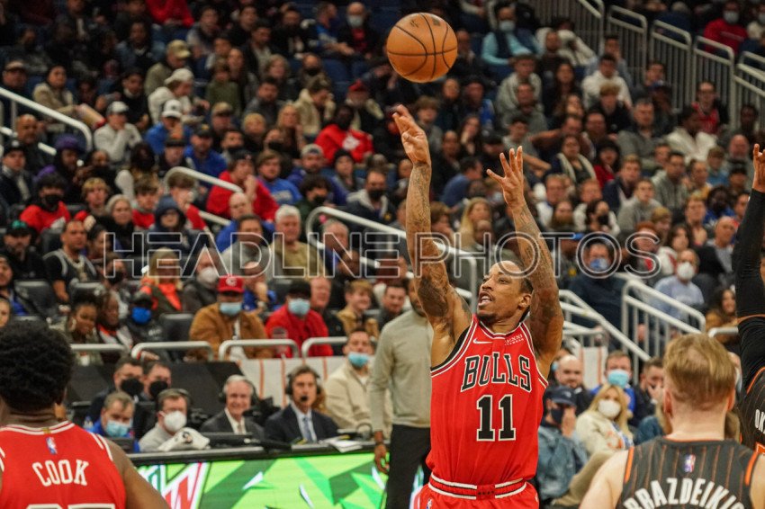 Orlando, Florida, USA, January 23, 2022, Chicago Bulls Guard forward DeMar DeRozan #11 shoots a three point shot during the second half at the Amway Center. (Photo Credit: Marty Jean-Louis)