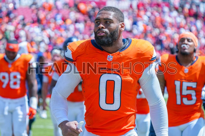 Tampa Bay, Florida, USA, September 22, 2024, Denver Broncos player Jonathon Cooper #0 at Raymond James Stadium. (Photo Credit: Marty Jean-Louis)