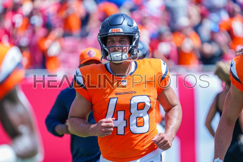 Tampa Bay, Florida, USA, September 22, 2024, Denver Broncos plaer Mitchell Fradobi #48 at Raymond James Stadium. (Photo Credit: Marty Jean-Louis)