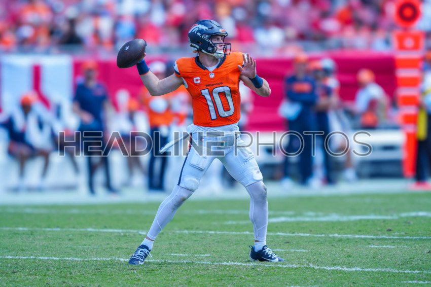 Tampa Bay, Florida, USA, September 22, 2024, Denver Broncos quaterback Bo NIx #10 at Raymond James Stadium. (Photo Credit: Marty Jean-Louis)