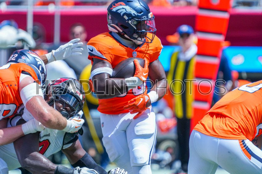 Tampa Bay, Florida, USA, September 22, 2024, Denver Broncos runningback Javonte Williams #33 makes a run at Raymond James Stadium. (Photo Credit: Marty Jean-Louis)