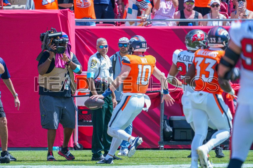 Tampa Bay, Florida, USA, September 22, 2024, Denver Broncos quaterback Bo NIx #10 makes a touchdown at Raymond James Stadium. (Photo Credit: Marty Jean-Louis)
