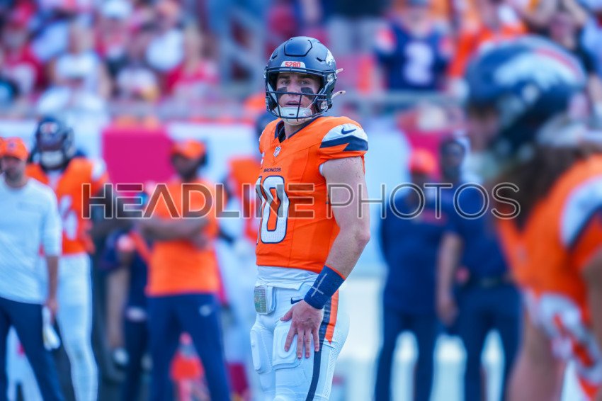 Tampa Bay, Florida, USA, September 22, 2024, Denver Broncos quaterback Bo NIx #10 at Raymond James Stadium. (Photo Credit: Marty Jean-Louis)