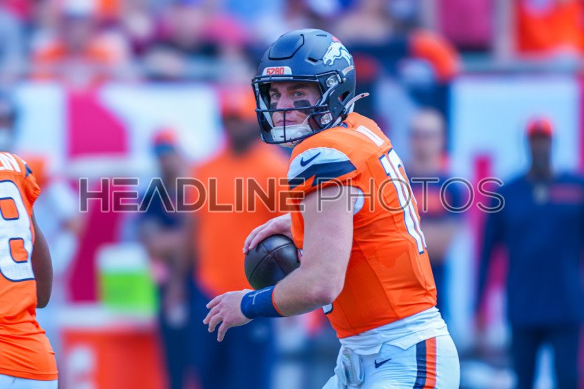 Tampa Bay, Florida, USA, September 22, 2024, Denver Broncos quaterback Bo NIx #10 at Raymond James Stadium. (Photo Credit: Marty Jean-Louis)