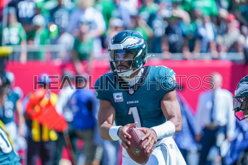 Tampa Bay, Florida, USA, September 29, 2024, Philadelphia Eagles quarterback Jalen Hurts #1 at Raymond James Stadium. (Photo Credit: Marty Jean-Louis)