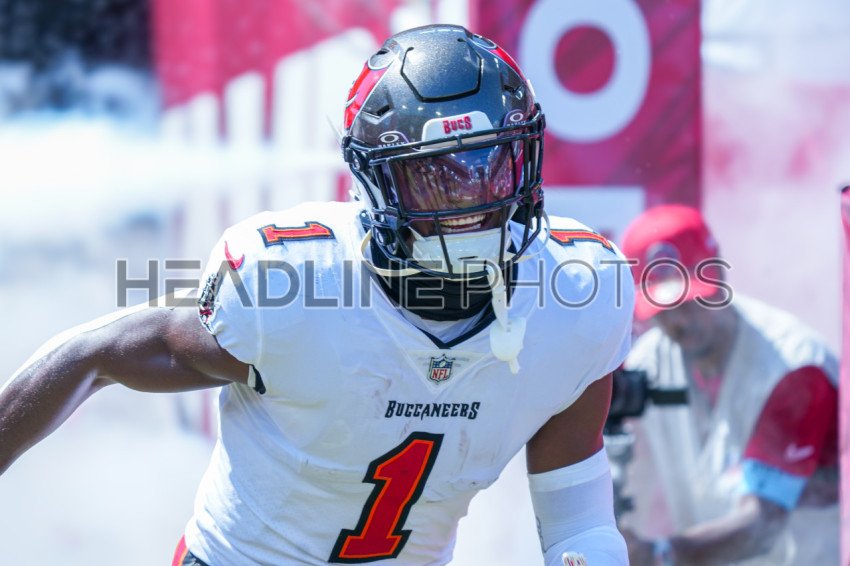 Tampa Bay, Florida, USA, September 29, 2024, Tampa Bay Buccaneers runningback Rachaad White #1 entering the field at Raymond James Stadium. (Photo Credit: Marty Jean-Louis)