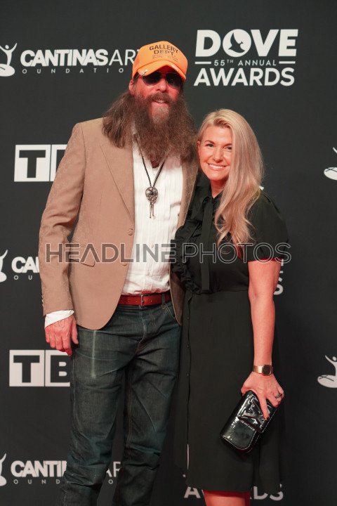 Nashville, Tennessee, USA, October 1, 2024. David Crowder with his wife At the Red carpet during the 55th Annual GMA Dove Awards at Lipscomb University Allen Arena (Photo Credit: Marty Jean-Louis)