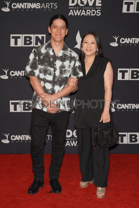 Nashville, Tennessee, USA, October 1, 2024. Mitch Wong with his wife At the Red carpet during the 55th Annual GMA Dove Awards at Lipscomb University Allen Arena (Photo Credit: Marty Jean-Louis)