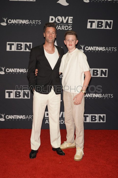 Nashville, Tennessee, USA, October 1, 2024. Ben Fielding with his son At the Red carpet during the 55th Annual GMA Dove Awards at Lipscomb University Allen Arena (Photo Credit: Marty Jean-Louis)