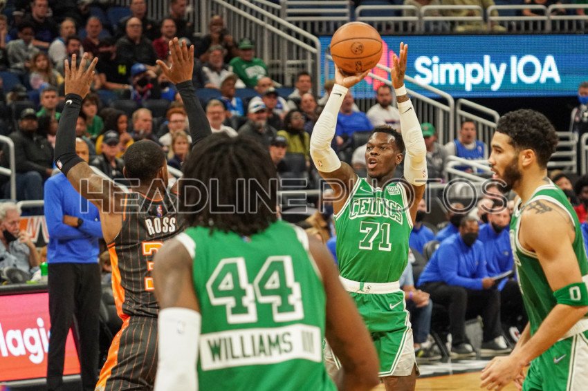 Orlando, Florida, USA, February 6, 2022, Boston Celtics Point Guard Dennis Schroder #71 shoots a three pointer during the second half at the Amway Center. (Photo Credit: Marty Jean-Louis)