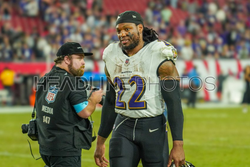 Tampa Bay, Florida, USA, October 21, 2024, Baltimore Ravens player Derrick Henry #22 at Raymond James Stadium. (Photo Credit: Marty Jean-Louis)