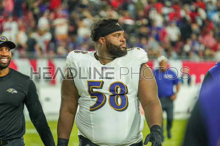 Tampa Bay, Florida, USA, October 21, 2024, Baltimore Ravens player Michael Pierce #58 at Raymond James Stadium. (Photo Credit: Marty Jean-Louis)