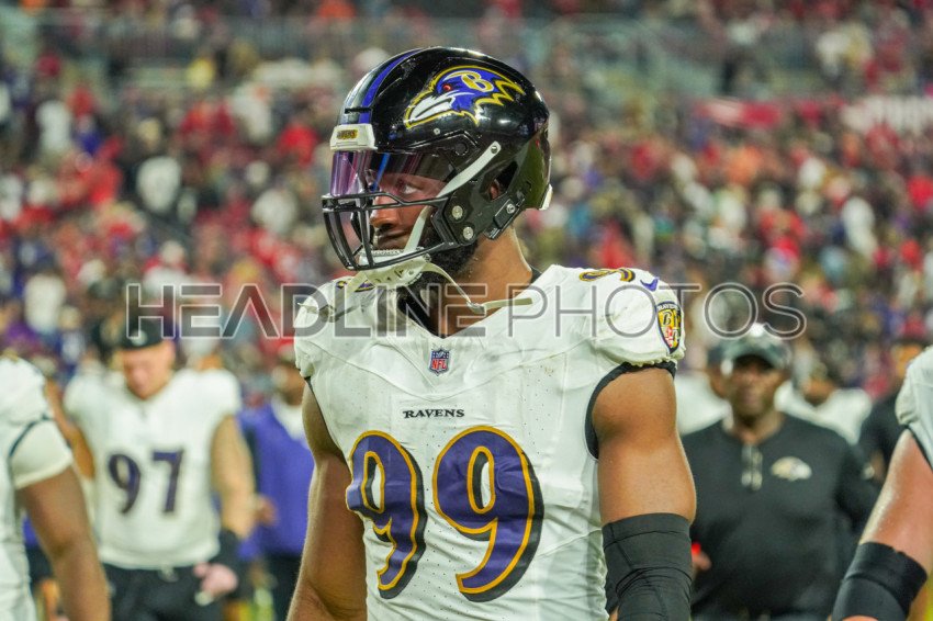 Tampa Bay, Florida, USA, October 21, 2024, Baltimore Ravens player Odafe Oweh #99 at Raymond James Stadium. (Photo Credit: Marty Jean-Louis)