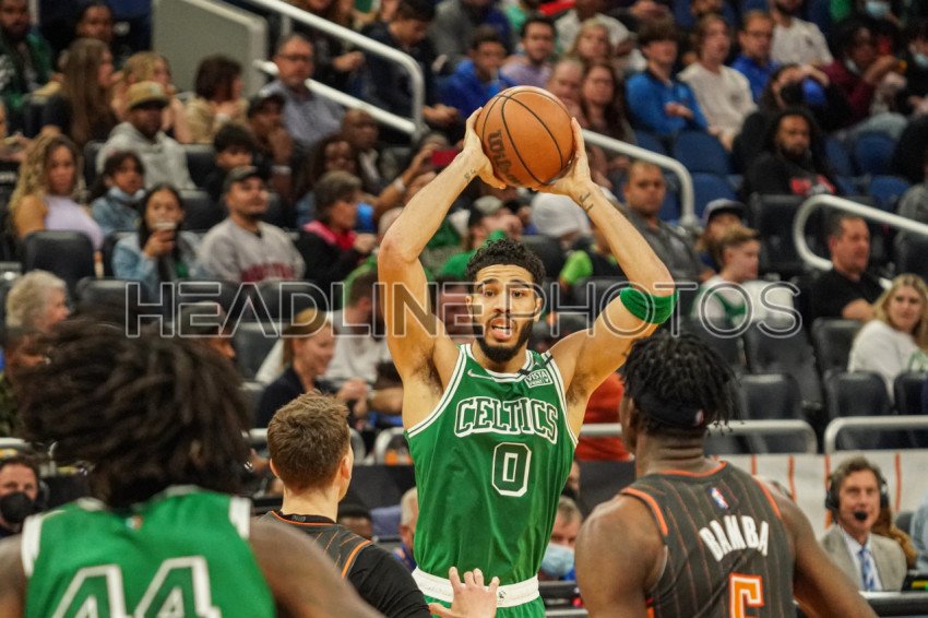 Orlando, Florida, USA, February 6, 2022, Boston Celtics Shooting Guard Jayson Tatum #0 looks to make a pass during the second half at the Amway Center. (Photo Credit: Marty Jean-Louis)