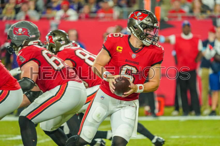 Tampa Bay, Florida, USA, October 21, 2024, Tampa Bay Buccaneers quarterback Baker Mayfield #6 at Raymond James Stadium. (Photo Credit: Marty Jean-Louis)