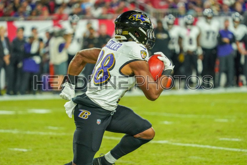 Tampa Bay, Florida, USA, October 21, 2024, Baltimore Ravens runningback Chris Collier #38 makes a run at Raymond James Stadium. (Photo Credit: Marty Jean-Louis)