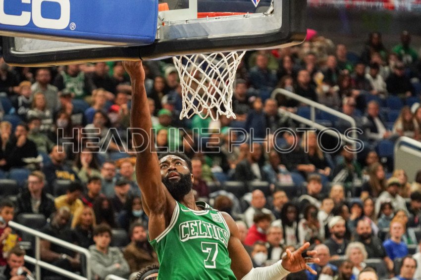Orlando, Florida, USA, February 6, 2022, Boston Celtics Shooting Guard Jaylen Brown #7 makes a dunk during the second half at the Amway Center. (Photo Credit: Marty Jean-Louis)