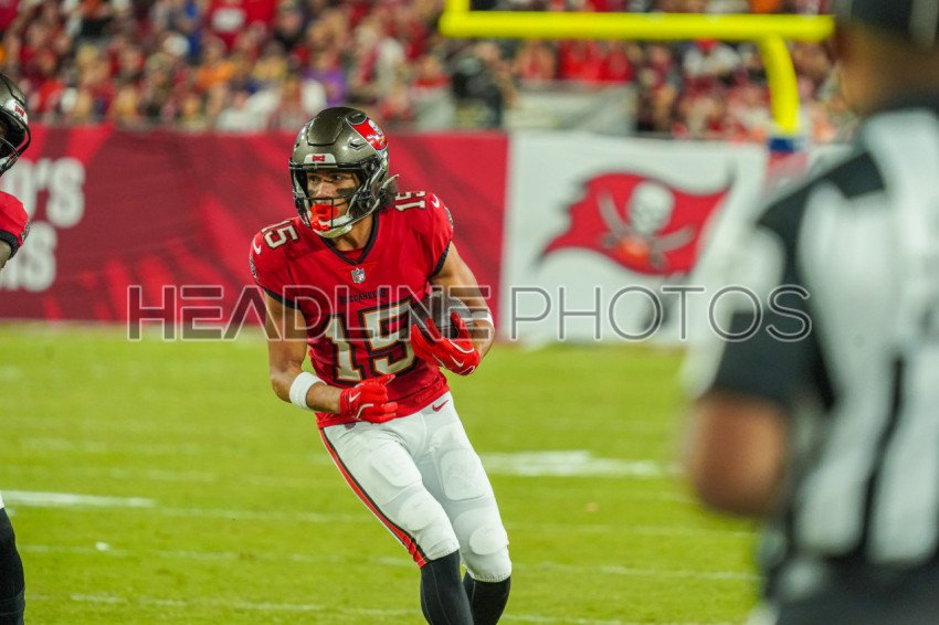 Tampa Bay, Florida, USA, October 21, 2024, Tampa Bay Buccaneers Wide Receiver Jalen McMilllan #15 makes a run at Raymond James Stadium. (Photo Credit: Marty Jean-Louis)