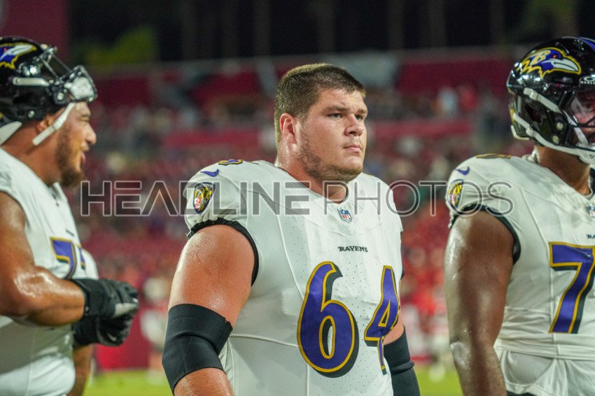Tampa Bay, Florida, USA, October 21, 2024, Baltimore Ravens player Tyler Linderbaum #64 at Raymond James Stadium. (Photo Credit: Marty Jean-Louis)