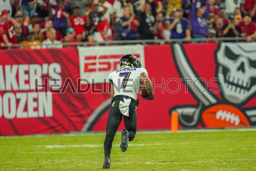 Tampa Bay, Florida, USA, October 21, 2024, Baltimore Ravens Wide Receiver Rashod Bateman #7 makes a run at Raymond James Stadium. (Photo Credit: Marty Jean-Louis)
