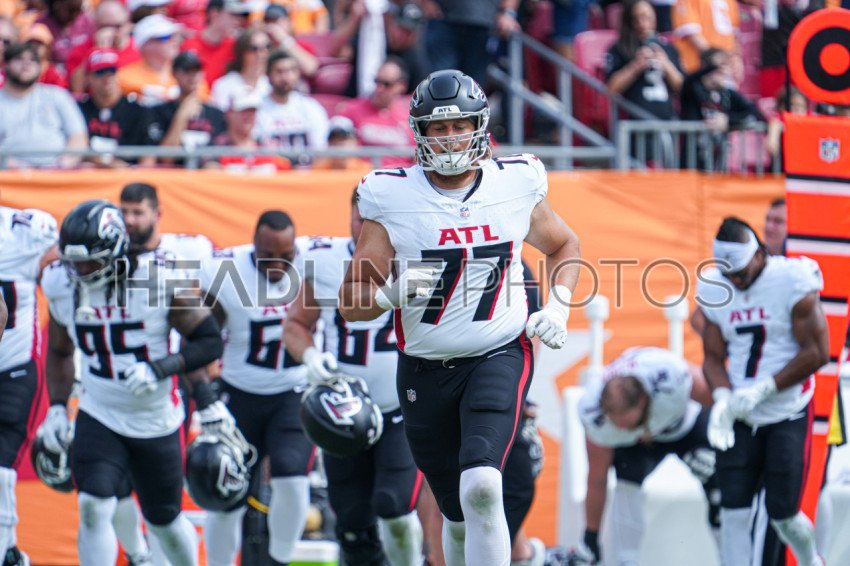 Tampa Bay, Florida, USA, October 27, 2024, Atlanta Falcons player Storm Norton #77 at Raymond James Stadium. (Photo Credit: Marty Jean-Louis)