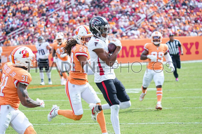 Tampa Bay, Florida, USA, October 27, 2024, Atlanta Falcons wide receiver Ray-Ray McCloud #34 makes a catch at Raymond James Stadium. (Photo Credit: Marty Jean-Louis)