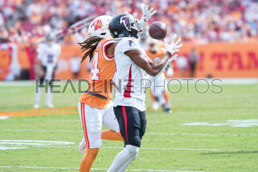 Tampa Bay, Florida, USA, October 27, 2024, Atlanta Falcons wide receiver Ray-Ray McCloud #34 makes a catch at Raymond James Stadium. (Photo Credit: Marty Jean-Louis)