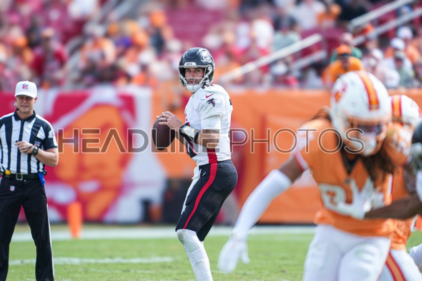 Tampa Bay, Florida, USA, October 27, 2024, Atlanta Falcons quarterback Kirk Cousins #18 look to make a pass at Raymond James Stadium. (Photo Credit: Marty Jean-Louis)