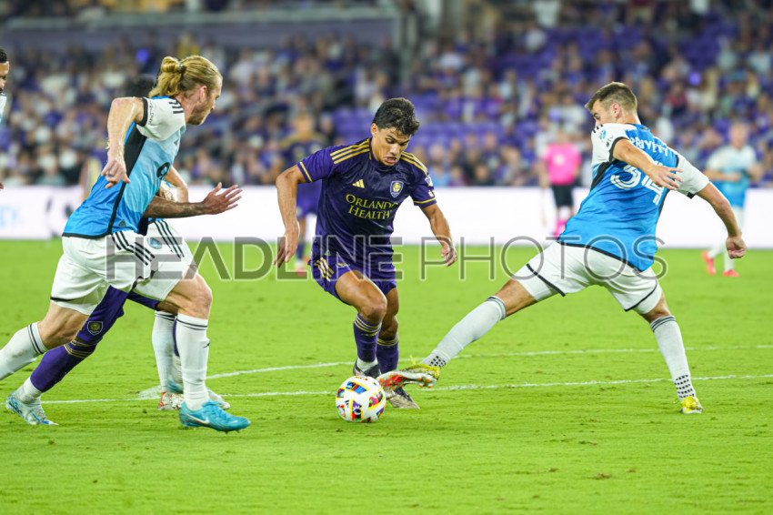 Orlando, Florida, USA, October 27, 2024, Orlando City SC forward Ramiro Enrique #7 attempt to run pass Charlotte defenders at Inter&Co Stadium. (Photo Credit: Marty Jean-Louis)