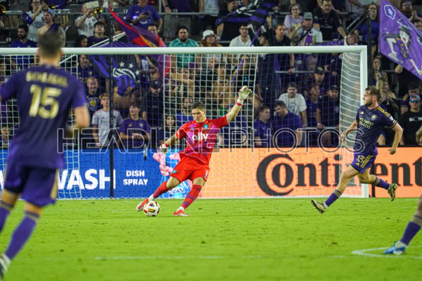 Orlando, Florida, USA, October 27, 2024, Charlotte FC goalkeeper Kristijan Kahlina #1 makes a goal kick at Inter&Co Stadium. (Photo Credit: Marty Jean-Louis)