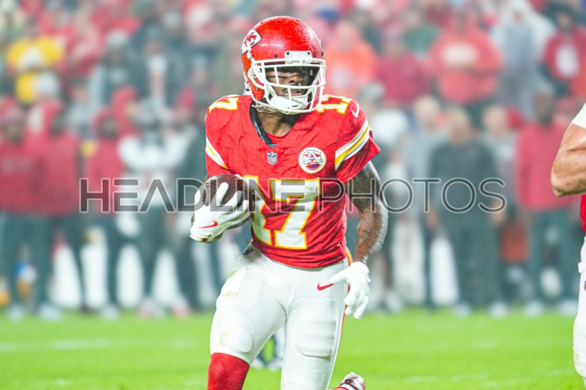 Kansas City, Missouri, USA, November 4, 2024, Kansas City Chiefs player Mecole Hardman #17 makes a run at GEHA Field Arrowhead Stadium. (Photo Credit: Marty Jean-Louis)