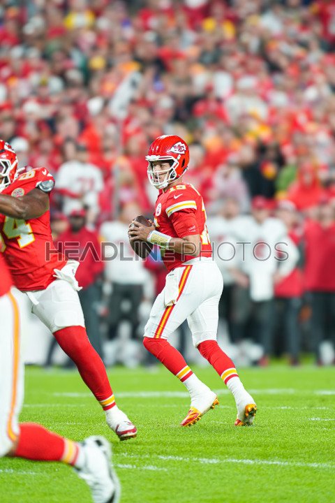 Kansas City, Missouri, USA, November 4, 2024, Kansas City Chiefs quarterback Patrick Mahomes #15 readies to make a pass at GEHA Field Arrowhead Stadium. (Photo Credit: Marty Jean-Louis)