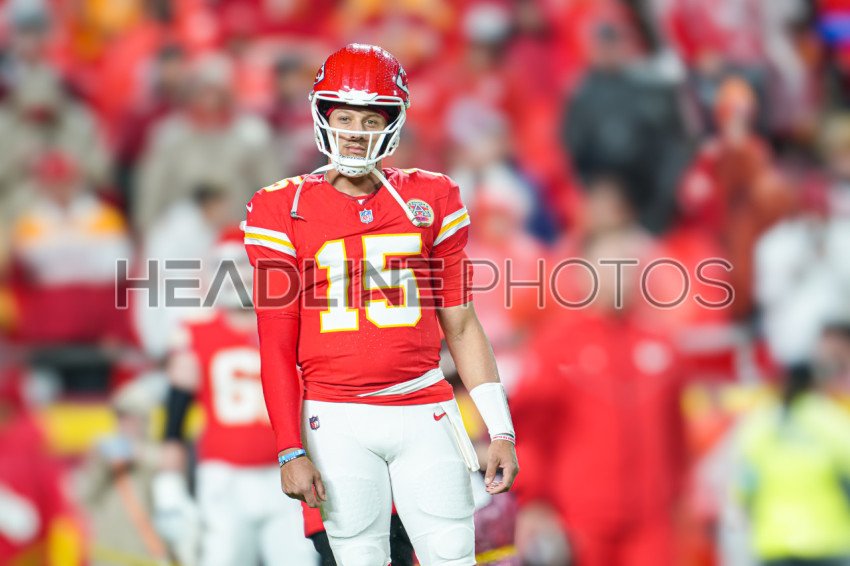 Kansas City, Missouri, USA, November 4, 2024, Kansas City Chiefs quarterback Patrick Mahomes #15 warming up at GEHA Field Arrowhead Stadium. (Photo Credit: Marty Jean-Louis)