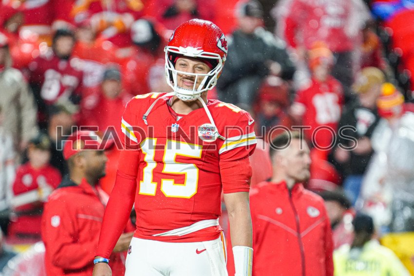 Kansas City, Missouri, USA, November 4, 2024, Kansas City Chiefs quarterback Patrick Mahomes #15 smiling during warm up at GEHA Field Arrowhead Stadium. (Photo Credit: Marty Jean-Louis)