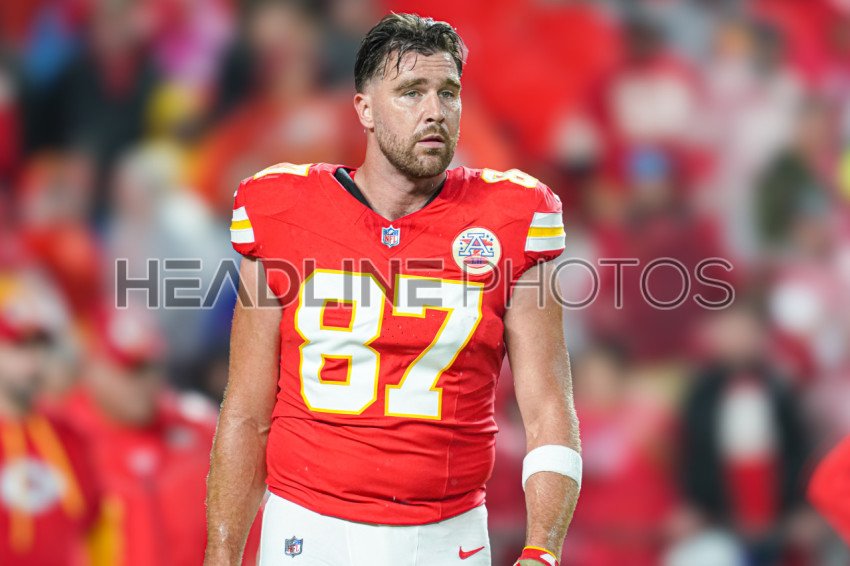Kansas City, Missouri, USA, November 4, 2024, Kansas City Chiefs Tight End Travis Kelce #87 warming up at GEHA Field Arrowhead Stadium. (Photo Credit: Marty Jean-Louis)