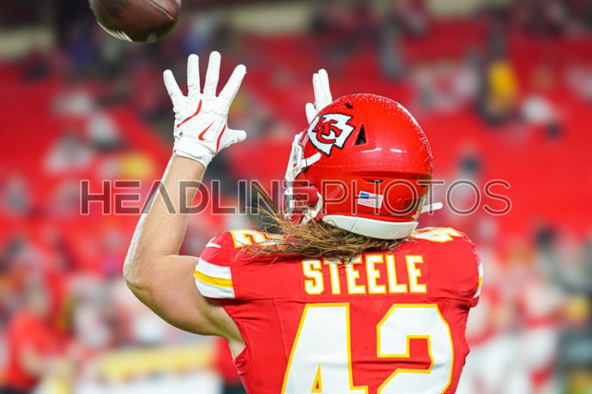 Kansas City, Missouri, USA, November 4, 2024, Kansas City Chiefs player Carson Steele #42 warming up at GEHA Field Arrowhead Stadium. (Photo Credit: Marty Jean-Louis)