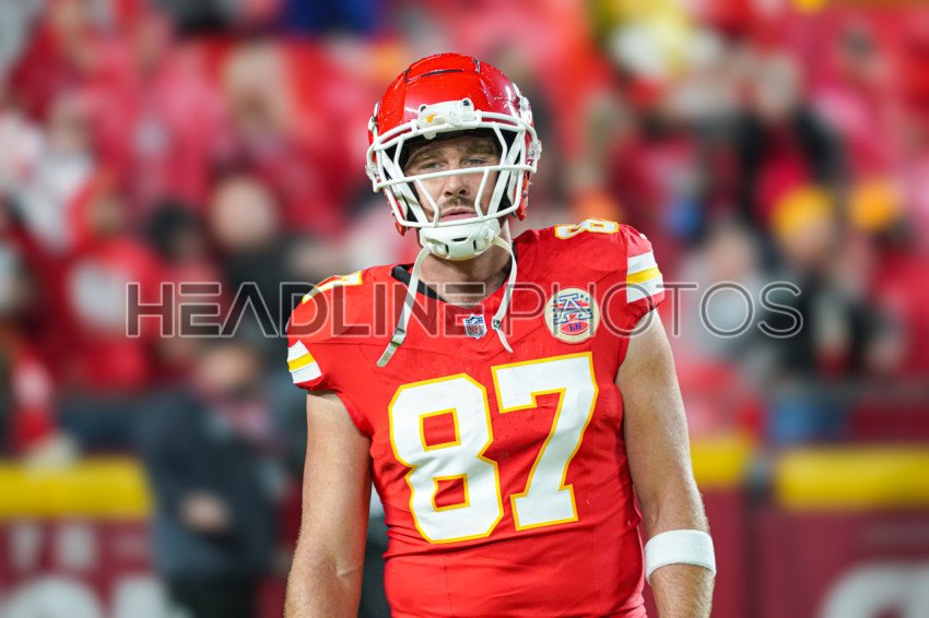 Kansas City, Missouri, USA, November 4, 2024, Kansas City Chiefs Tight End Travis Kelce #87 warming up at GEHA Field Arrowhead Stadium. (Photo Credit: Marty Jean-Louis)