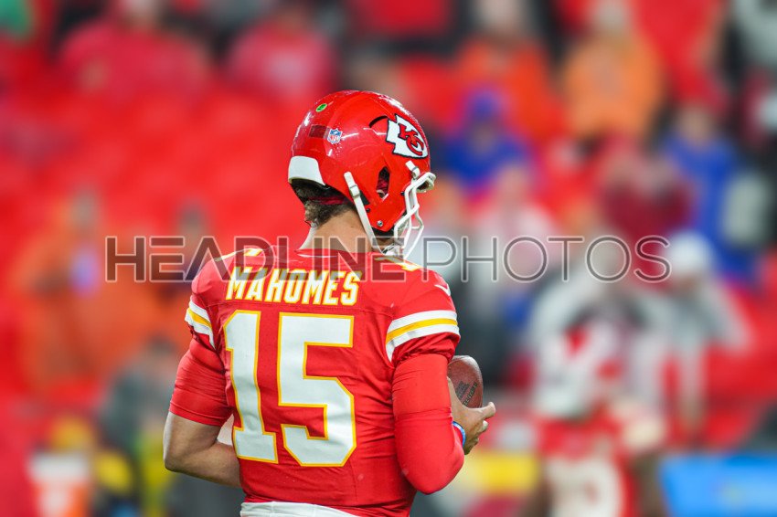 Kansas City, Missouri, USA, November 4, 2024, Kansas City Chiefs quarterback Patrick Mahomes #15 warming up at GEHA Field Arrowhead Stadium. (Photo Credit: Marty Jean-Louis)