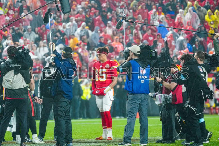 Kansas City, Missouri, USA, November 4, 2024, Kansas City Chiefs quarterback Patrick Mahomes #15 during the coin toss for overtime play at GEHA Field Arrowhead Stadium. (Photo Credit: Marty Jean-Louis)